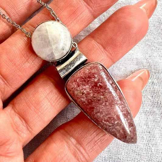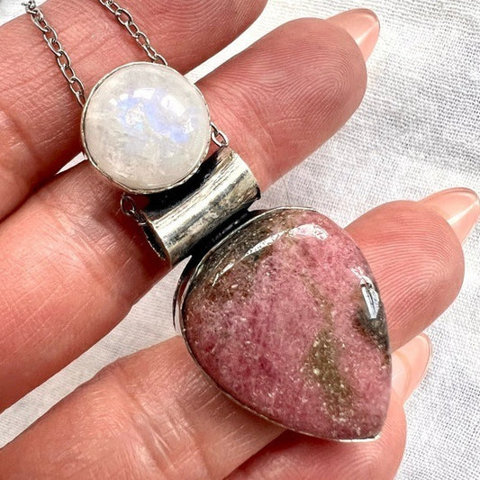 925 Love + Peace Rhodonite & Subtle Flash Moonstone Pendant Necklace