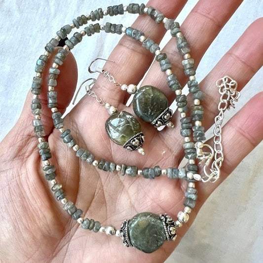 925 STUNNING! Rainbow Moonstone Necklace + Earrings Set.