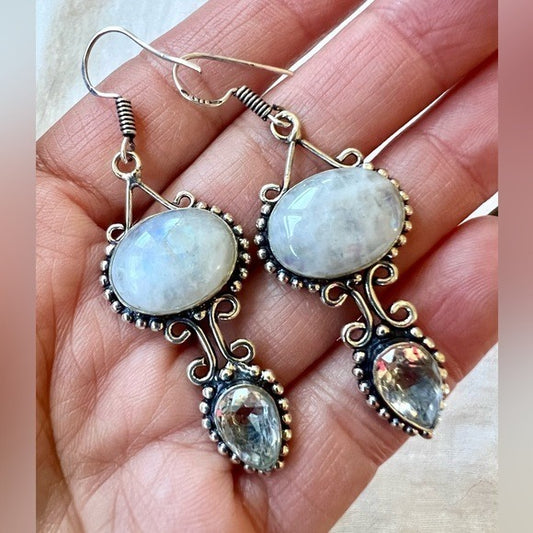 925 Rainbow Moonstone + Topaz Chandelier Earrings