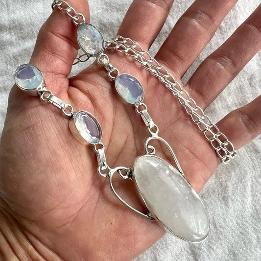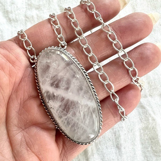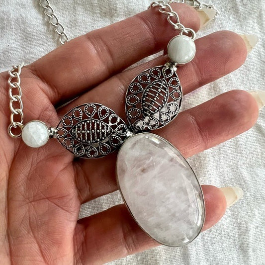 925 Feminine Rose Quartz + Moonstone Necklace Pendant