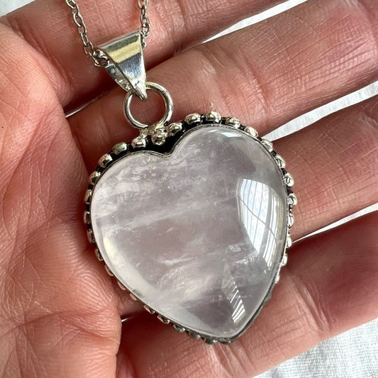 925 Rose Quartz Heart ❤️ Necklace Pendant