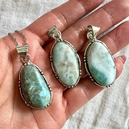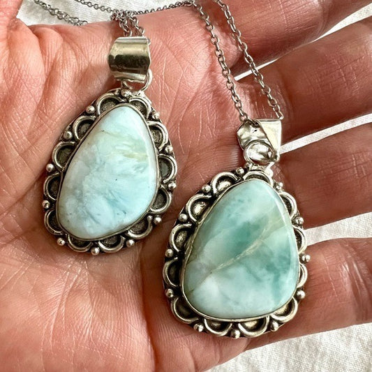 925 Caribbean Larimar Ocean Blue Necklace Pendant