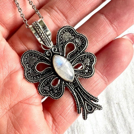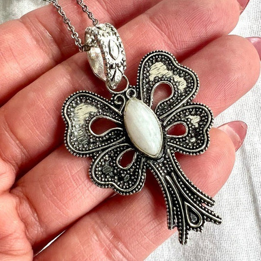 925 Gorgeous Butterfly Bow Moonstone Necklace Pendant
