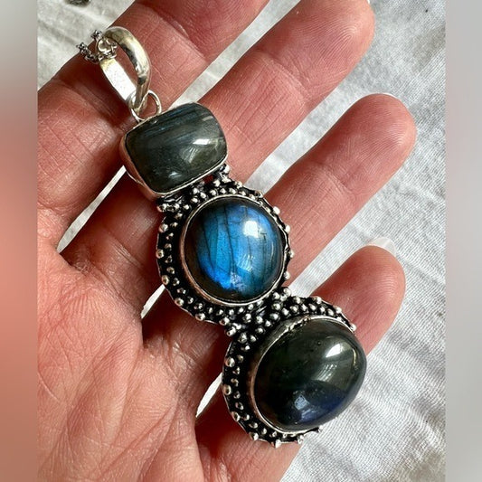 925 Triple Flash Blue Labradorite Necklace Pendant