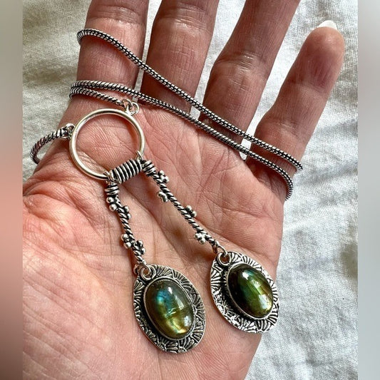 925 Stunning Flash Labradorite Lariat Style Necklace