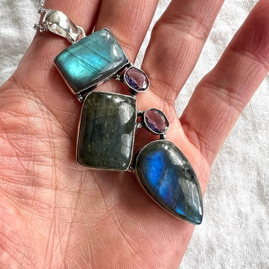 925 Transcend Multi Flash Labradorite Pendant Necklace