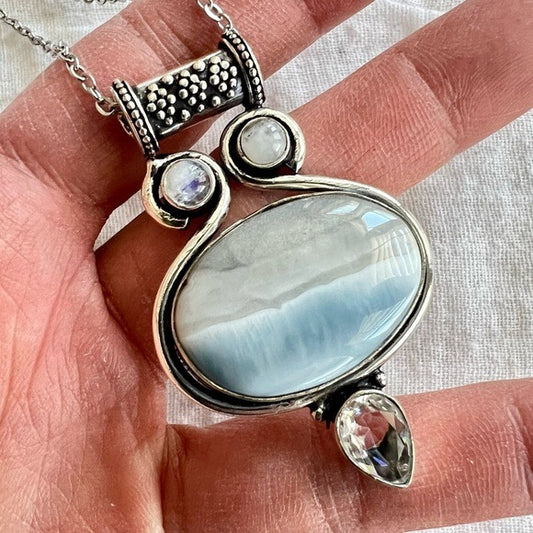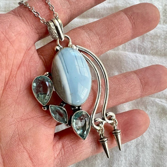 925 HIGH⚡️VIBE Peruvian Owyhee Opal + Topaz Necklace Pendant