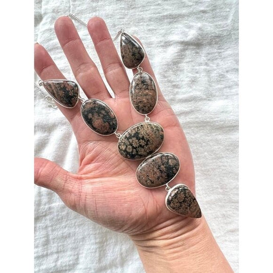 925 AURA! Red Snowflake Obsidian Statement Necklace!