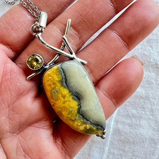 925 Evolution Bumble Bee Jasper + Citrine Necklace Pendant