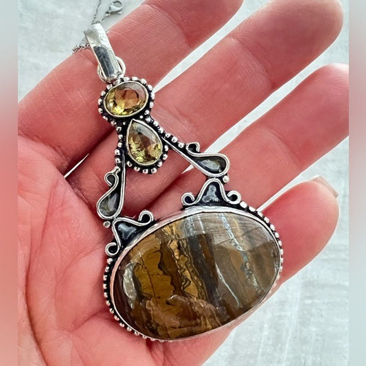 925 Solar Power Chakra Tigers Eye Pendant Necklace