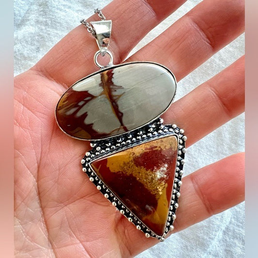 925 Vitality Stone Double Mookaite Jasper Necklace Pendant