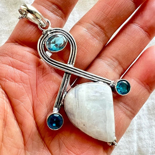 925 Yin Moonstone + Swiss Blue Topaz Necklace Pendant