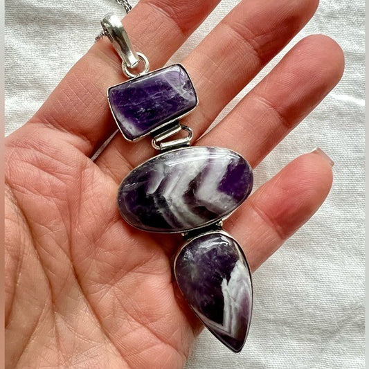 925 Blonde African Zebra Calcite Pendant Necklace Only