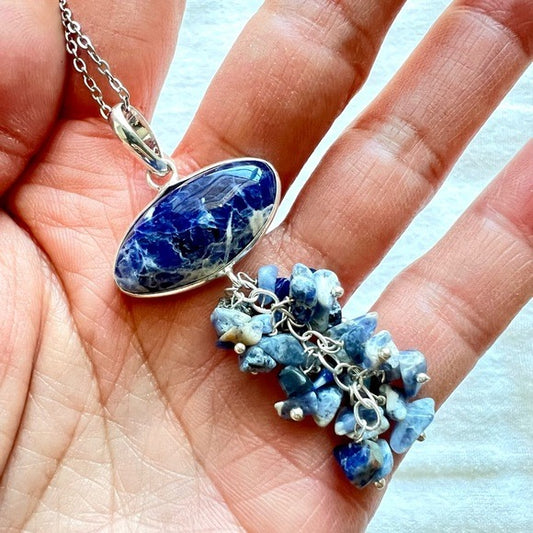 925 Spiritual Sodalite Dangling Stones Pendant Necklace
