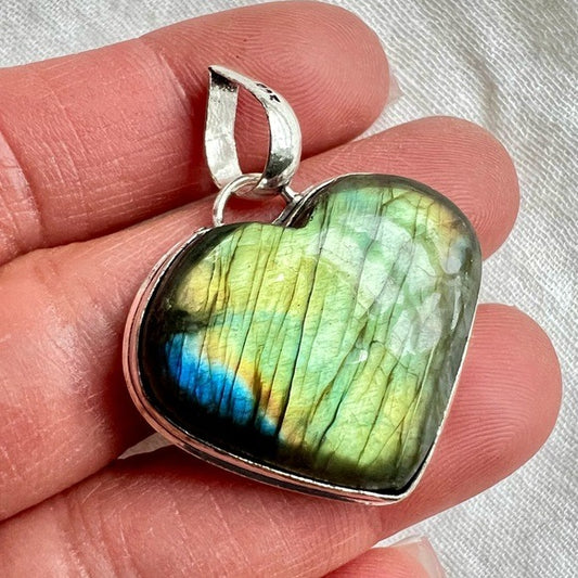 925 Flash Labradorite ❤️ Heart Pendant Necklace