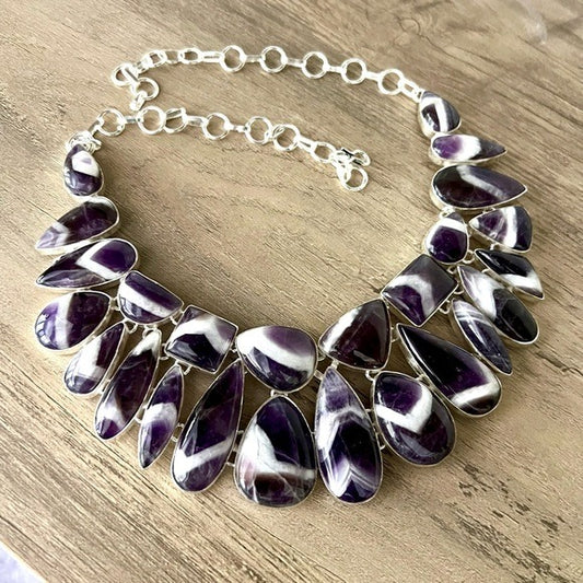 925 GORGEOUS GODDESS Dream Amethyst Collar Bib Necklace