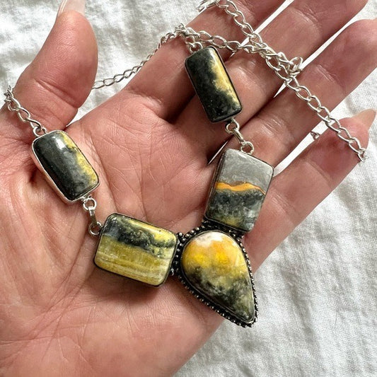 925 Creative Flow Bumble Bee Jasper 5 Stone Necklace