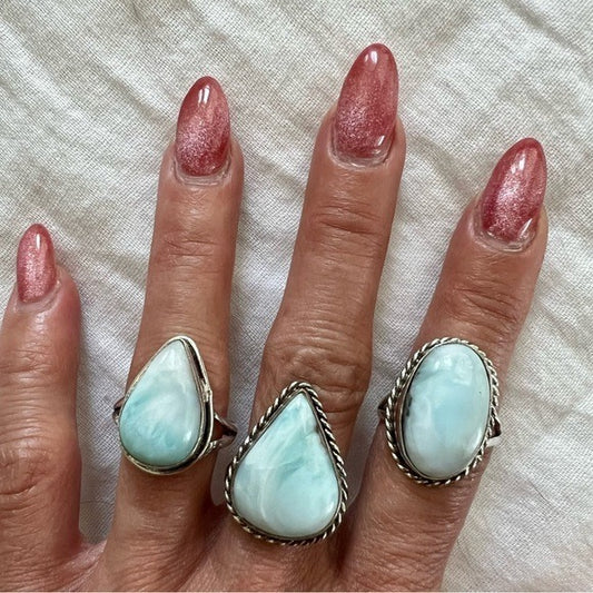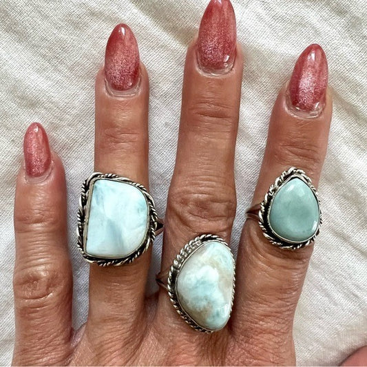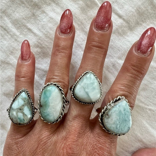 925 You Choose! Ocean Blue Caribbean Larimar Ring 8.5