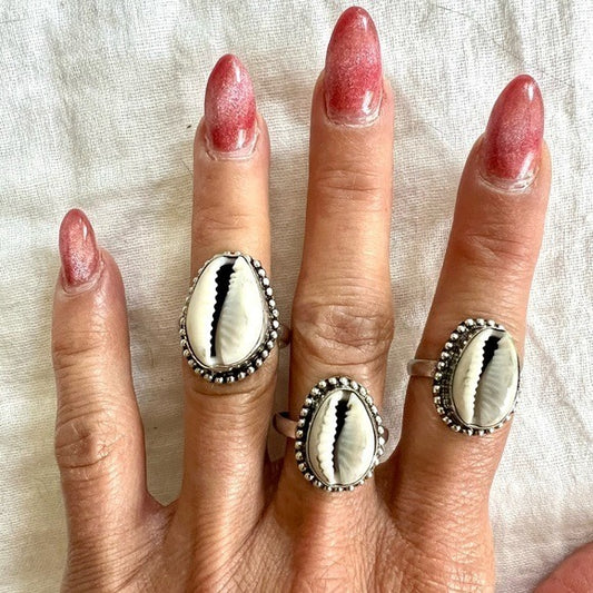 925 Goddess Yemaya Cowrie Shell Ring 8.5