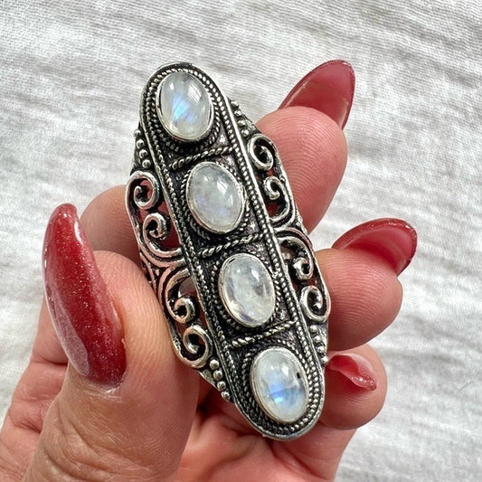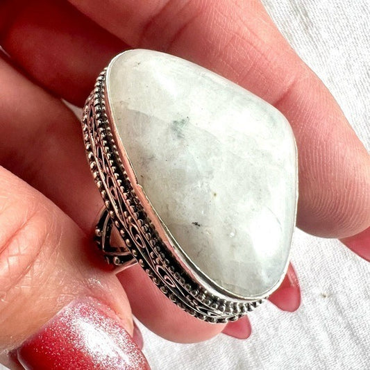 925 Stunning Geometric Chunky Rainbow Moonstone Ring 9.5