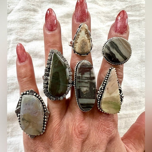 925 Your Choose! 2 Rings for $20. Make me the offer! Agate & Jasper - All size 9