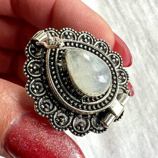 925 OMG! Rainbow Moonstone POISON Locket Ring 8
