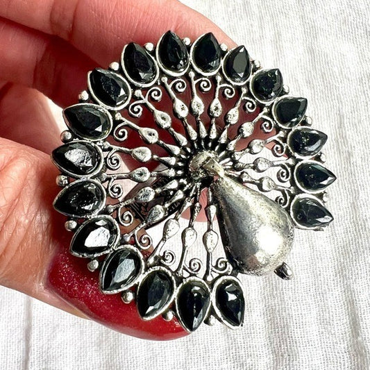 925 HUGE! Peacock Black Spinel Mandala Ring 8.5