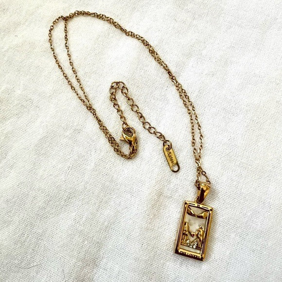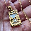 18k Gold Overlay “THE LOVERS” VI Tarot Card Necklace Pendant