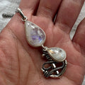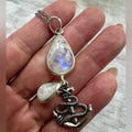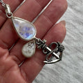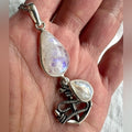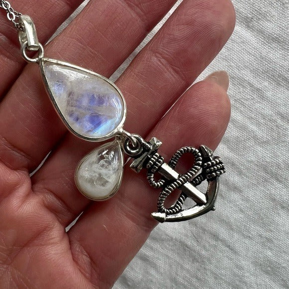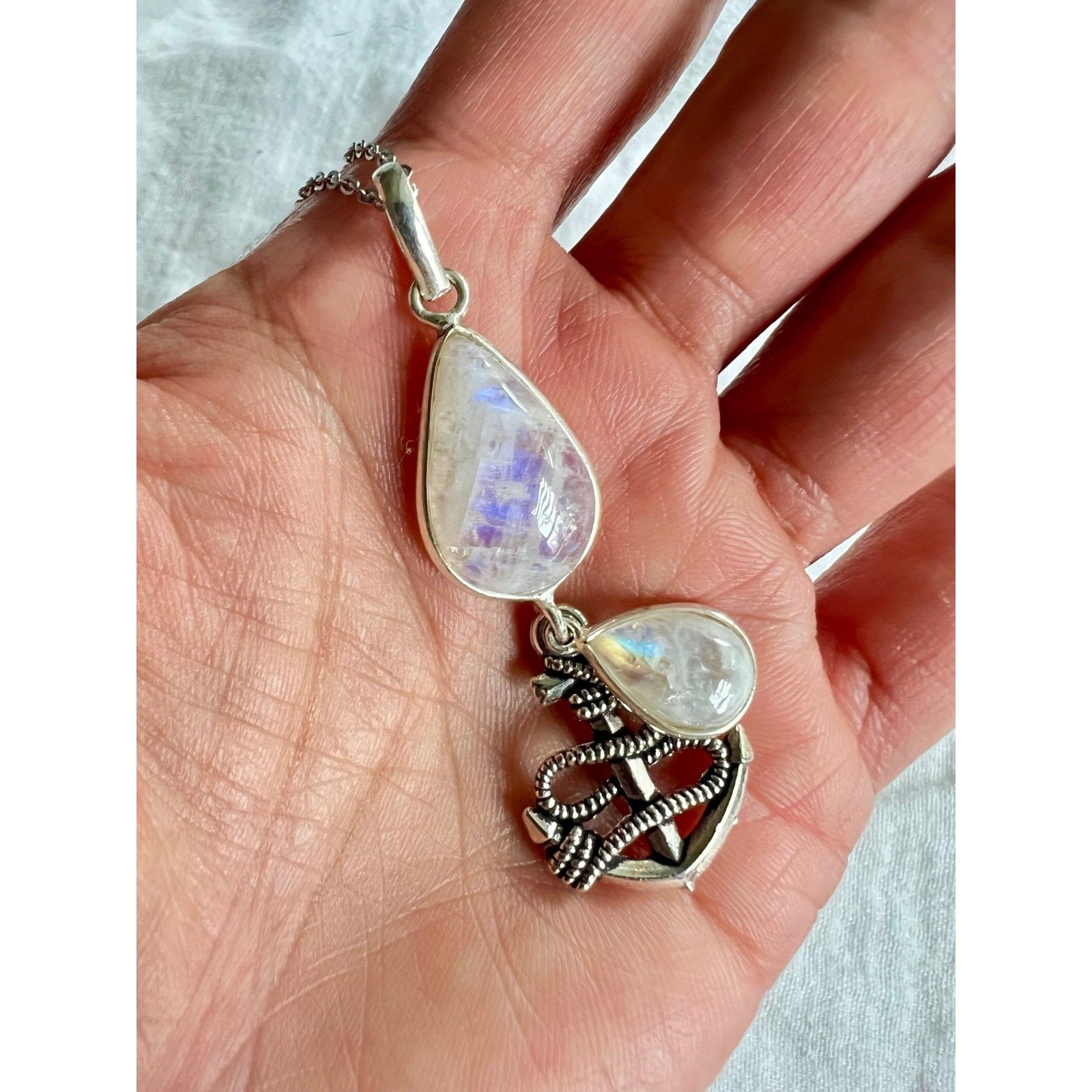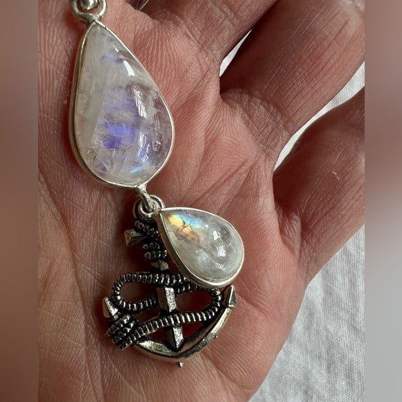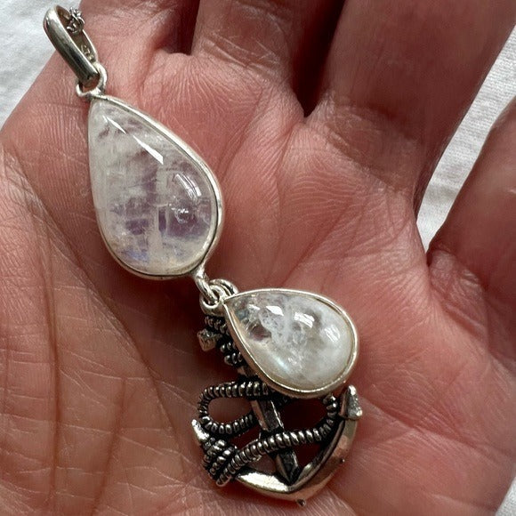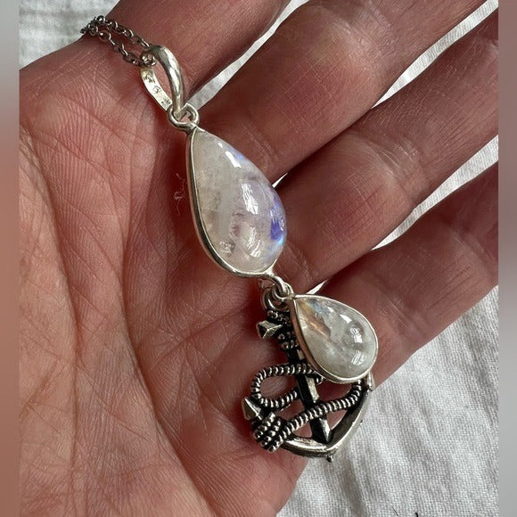 925 Anchor Rainbow Flash Double Moonstone Necklace Pendant