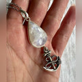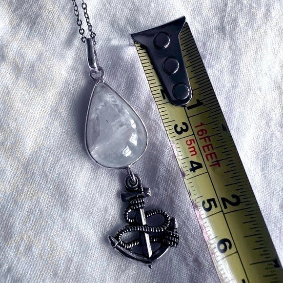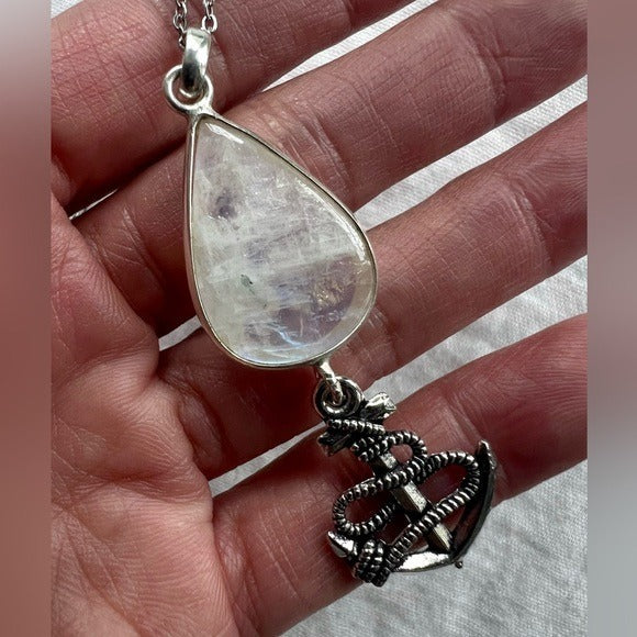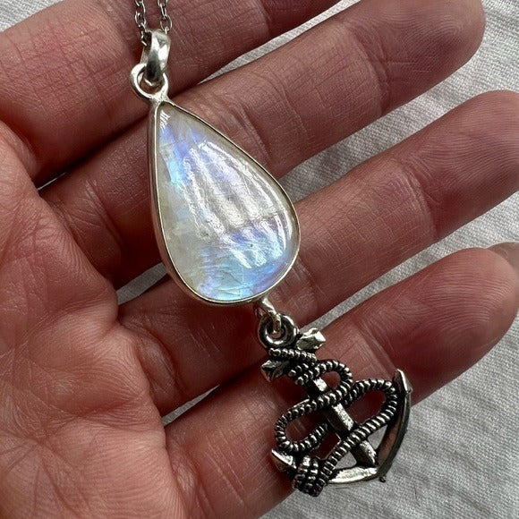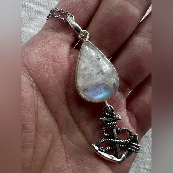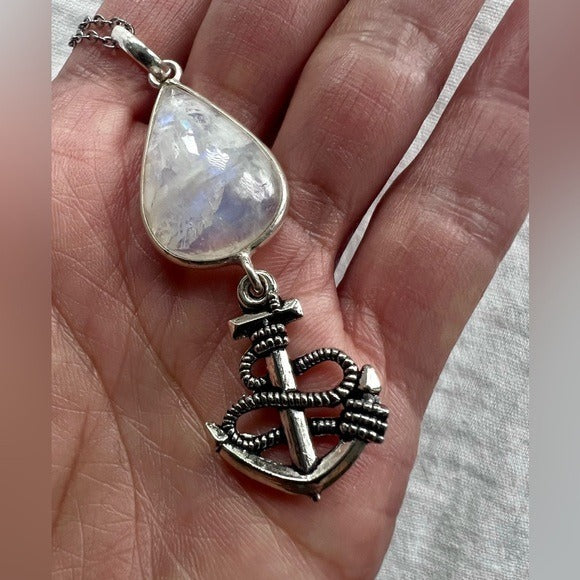 925 Anchor Rainbow Flash Moonstone Pendant Necklace