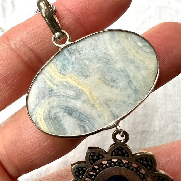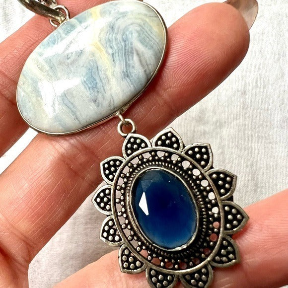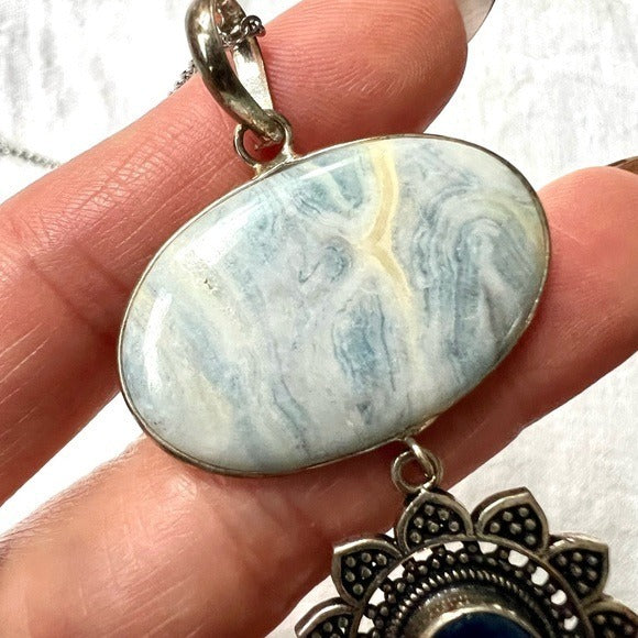 As a member of the quartz family, Blue Lace Agate has many metaphysical and healing benefits. Its soft energy is cooling and calming and brings peace of mind. It is perfect for healing the Throat chakra and assisting in all forms of communication. It can help you communicate with other world and celestial beings and fellow humans. It is a highly spiritual stone that can ground you and enlighten you.