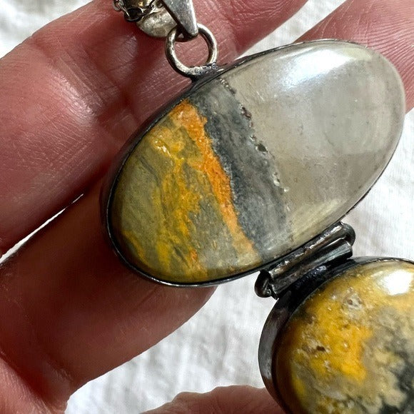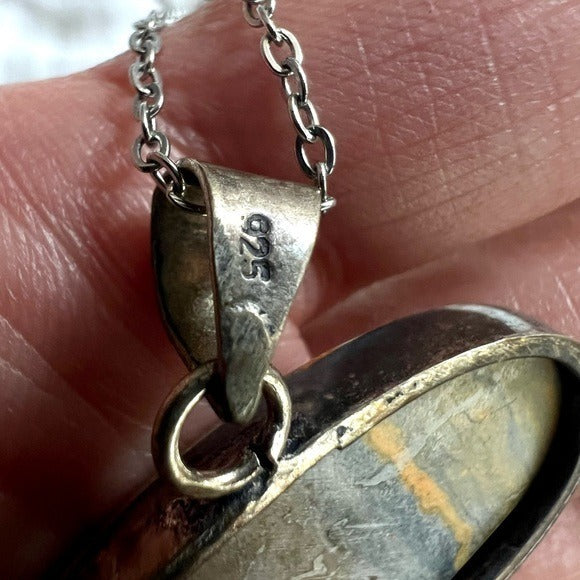 925 Antiqued Bumble Bee Jasper Pendant Necklace