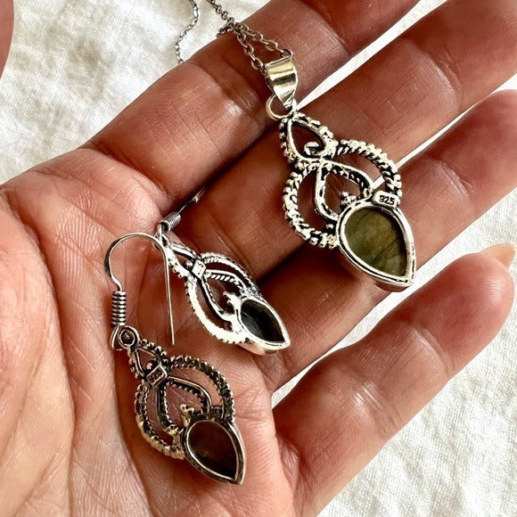 925 BEAUTY! Flash Labradorite Earrings + Necklace SET! 2 Piece