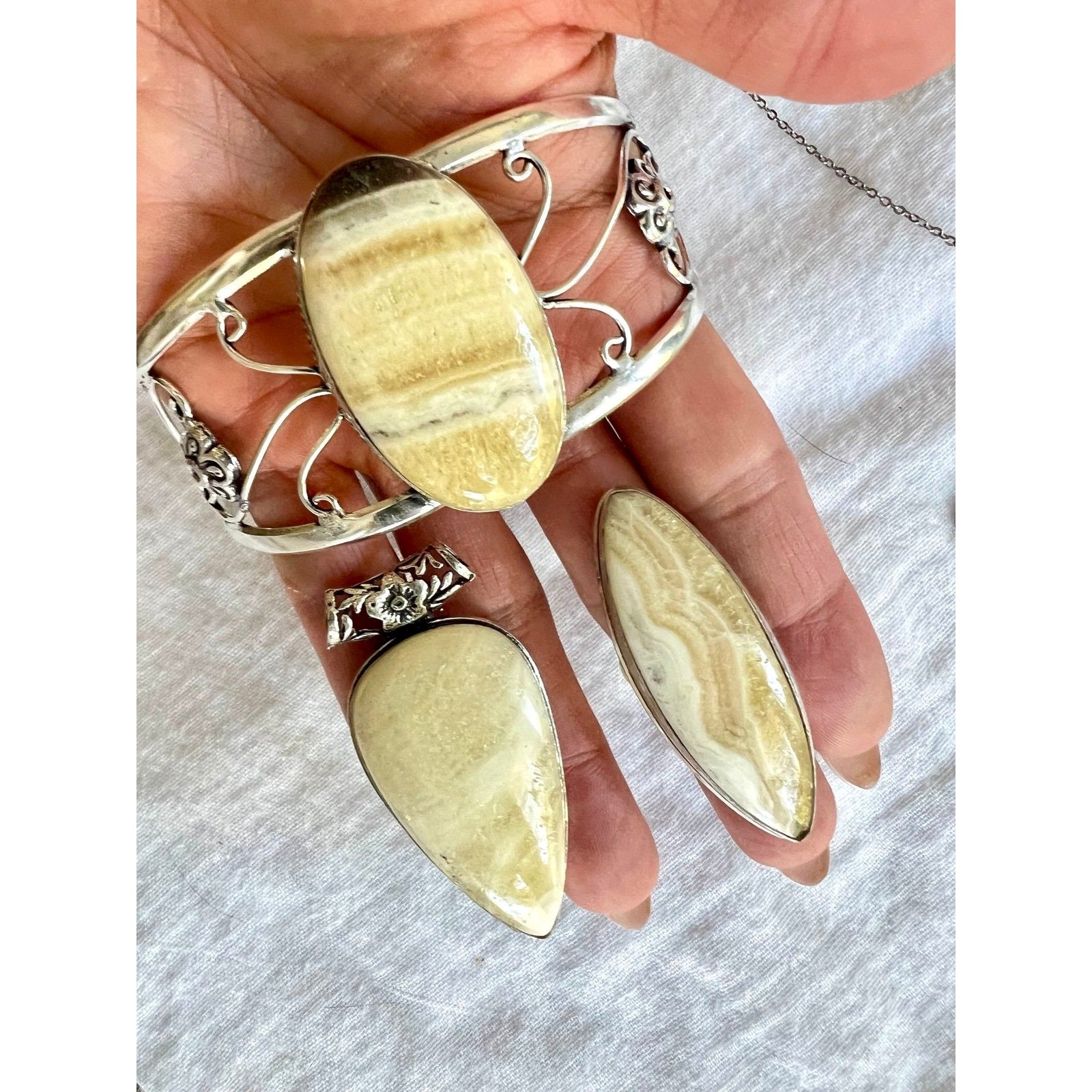 925 Blonde Laguna Lace Calcite Pendant Necklace