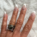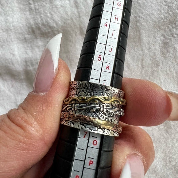 925 Blue Flash Labradorite SPINNER Tri Color Ring 6.75 Gold Copper Silver