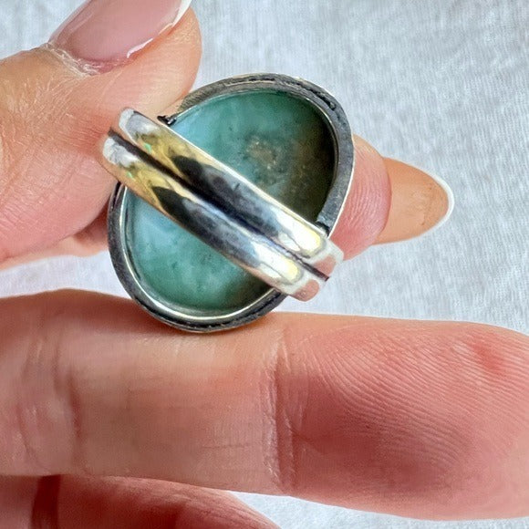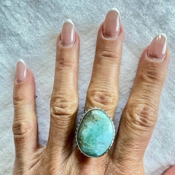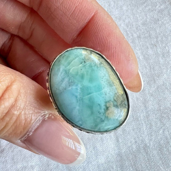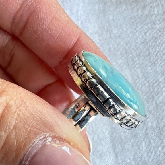 925 Calming Caribbean LARIMAR Earth Ring 6.5