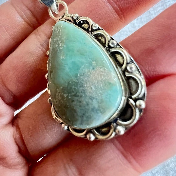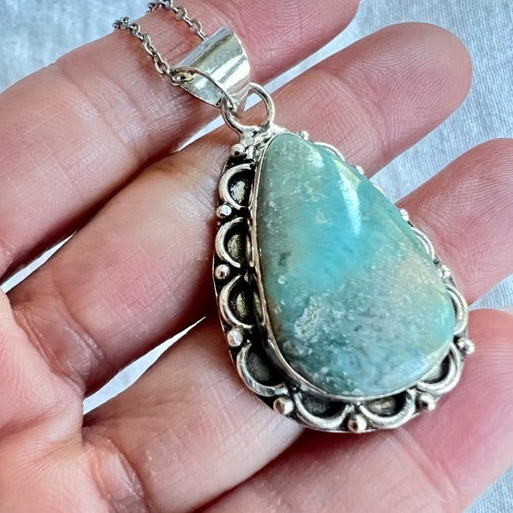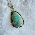 925 stamped, sterling silver overlay. Comes on an 18" chain.