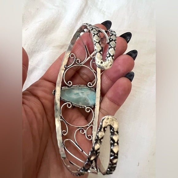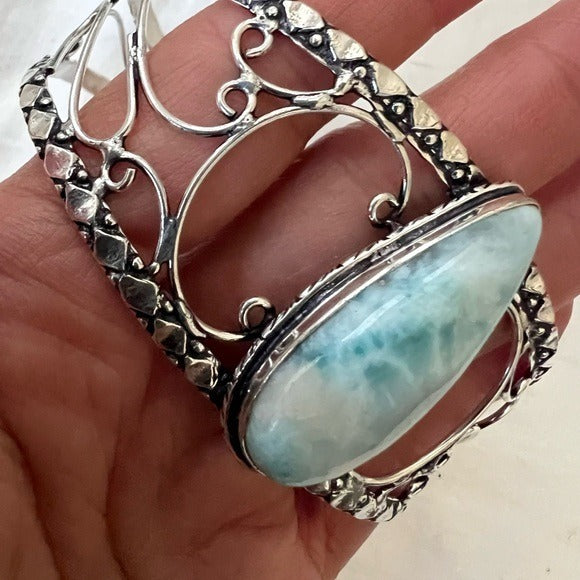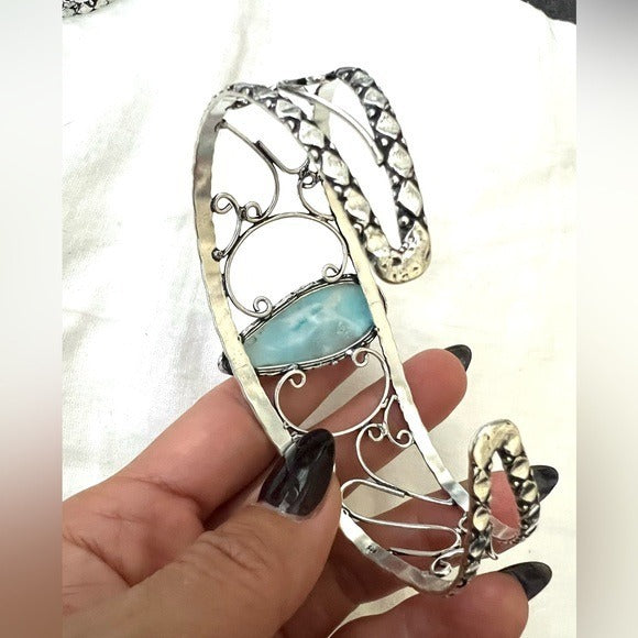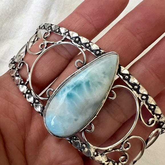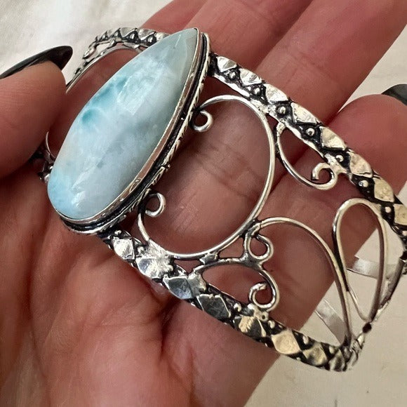 925 Calming Caribbean Teardrop LARIMAR Cuff Braclet