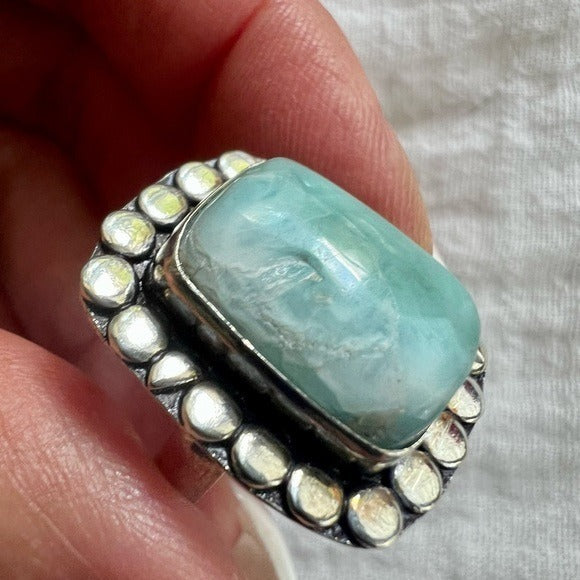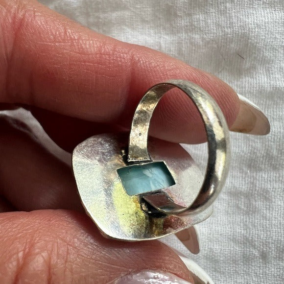 925 Caribbean Larimar Ring (flaw) Sz 7