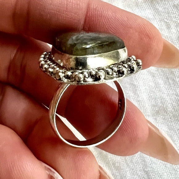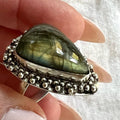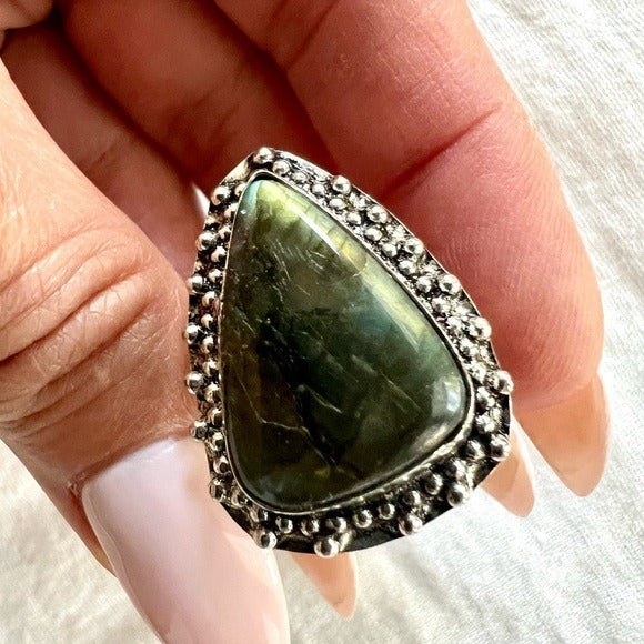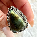 925 Chunky Teardrop Flash Labradorite Ring 8.5