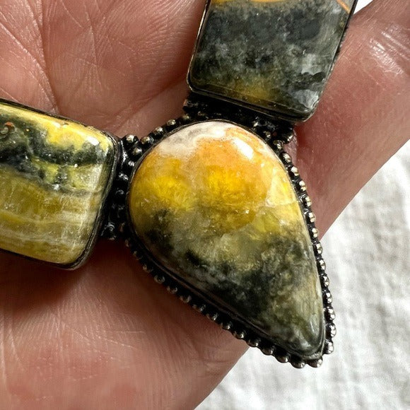 925 Creative Flow Bumble Bee Jasper 5 Stone Necklace