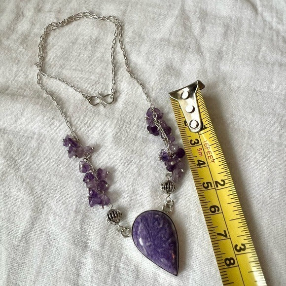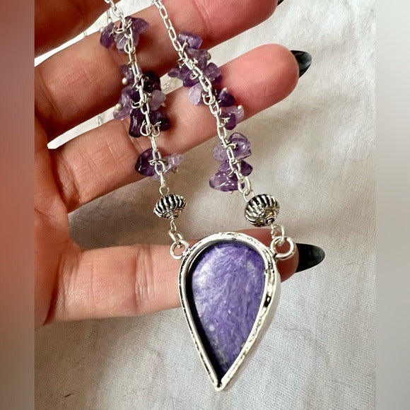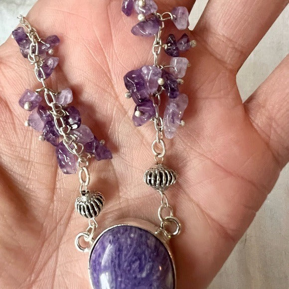 925 Crown Chakra Charoite + Amethyst Necklace