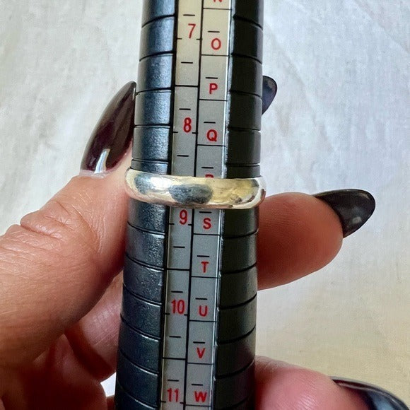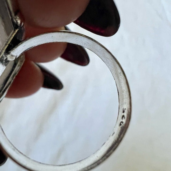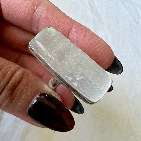 925 stamped sterling silver overlay. Sz 8.75. Please see all photos for condition, as this is raw selenite.