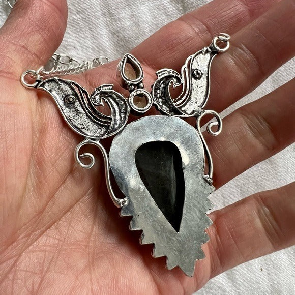 925 stamped sterling silver overlay. Comes on an 18" chain. I love to bundle to save you shipping, just add items to cart or message me!