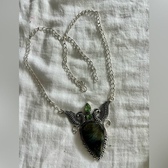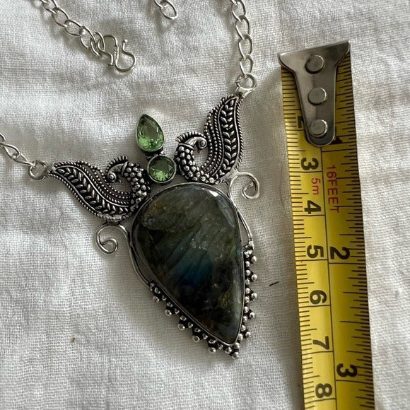 925 Dark Labradorite w/ Bright Angled Flash Necklace