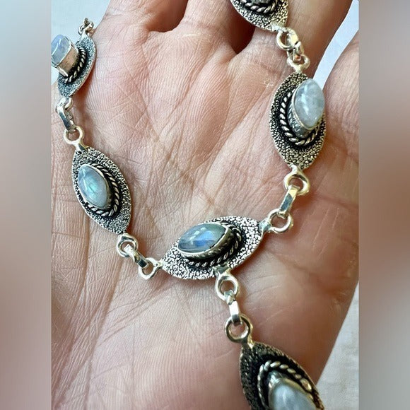 925 Delicate Rainbow Flash Moonstone Necklace