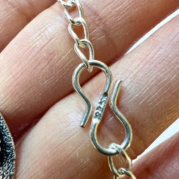925 stamped, sterling silver overlay. Comes on an 18" chain.