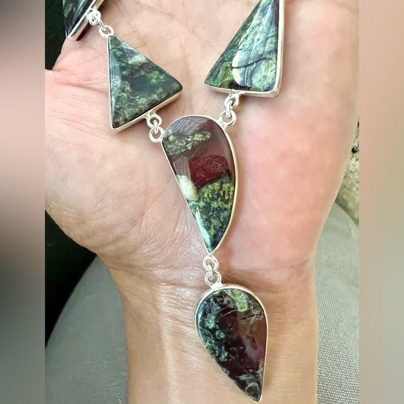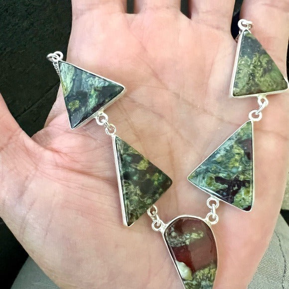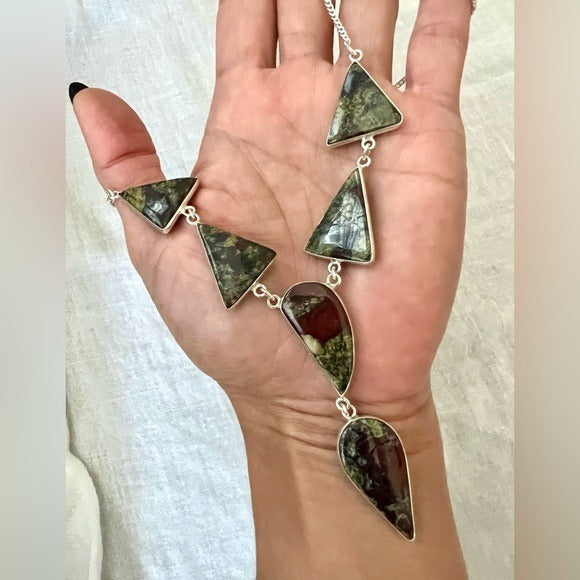 925 Dragons Blood Bloodstone Multi Stone Necklace