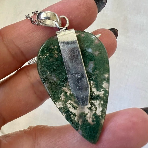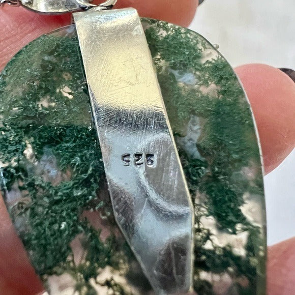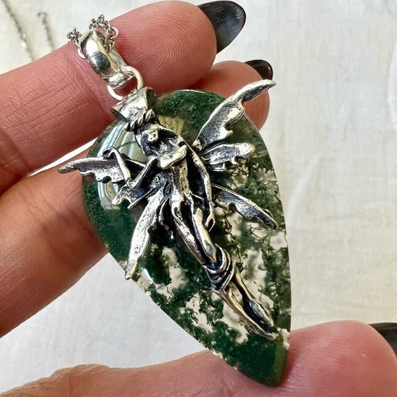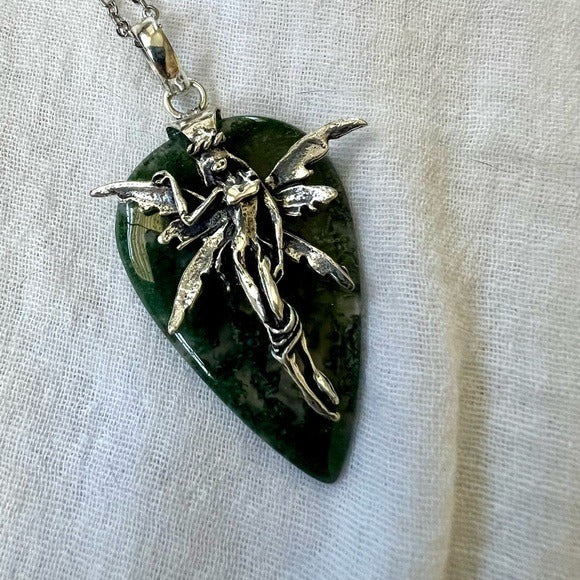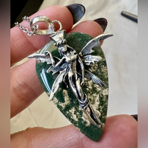 925 Earth Stone Moss Agate FAIRY Pendant Necklace