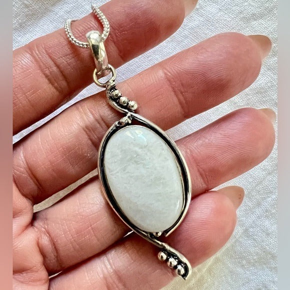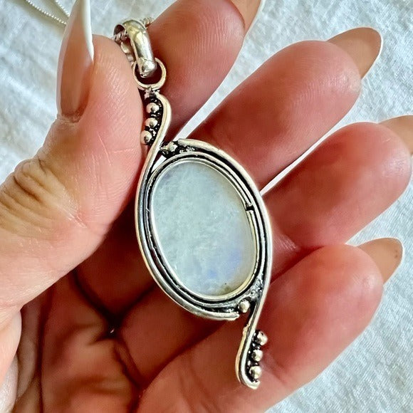 925 Elegant Rainbow Flash Moonstone Necklace Pendant